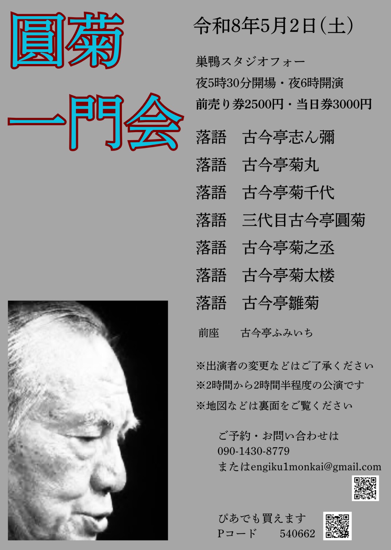 | メルマガ(圓菊 Third zo!)登録は右記QRコードを読み込んでいただき、そのままメールを送信してください。 | ![]() |